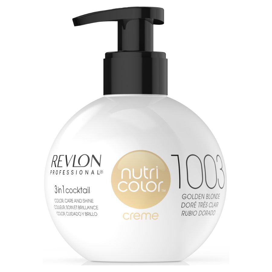 Revlon Nutri Color Creme 1003 Golden Blonde 270ml on ammattimaisen tason hiusväri, joka sisältää runsaasti ravitsevia ainesosia. Tämä ainutlaatuinen tuote antaa hiuksillesi intensiivisen kiillon ja kirkkaan värin. Revlon Nutri Color Creme on erinomainen valinta sinulle, joka haluat muuttaa hiustesi väriä tai lisätä syvyyttä nykyiseen sävyysi.